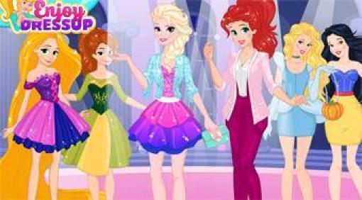 Disney Girls Night Out - make up and dress Ariel and Elsa who are preparing together for a spectacular party.