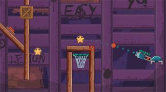 Shoot the basketball ball from the cannon to pick up the three stars and get into the basket.