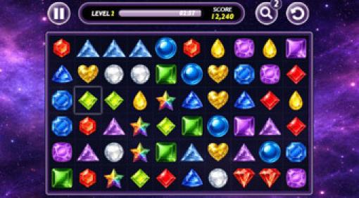 Connect pairs of identical gems to clear the entire board as quickly as possible. However, gem connections can only have three breaks, so you have to plan each move carefully.